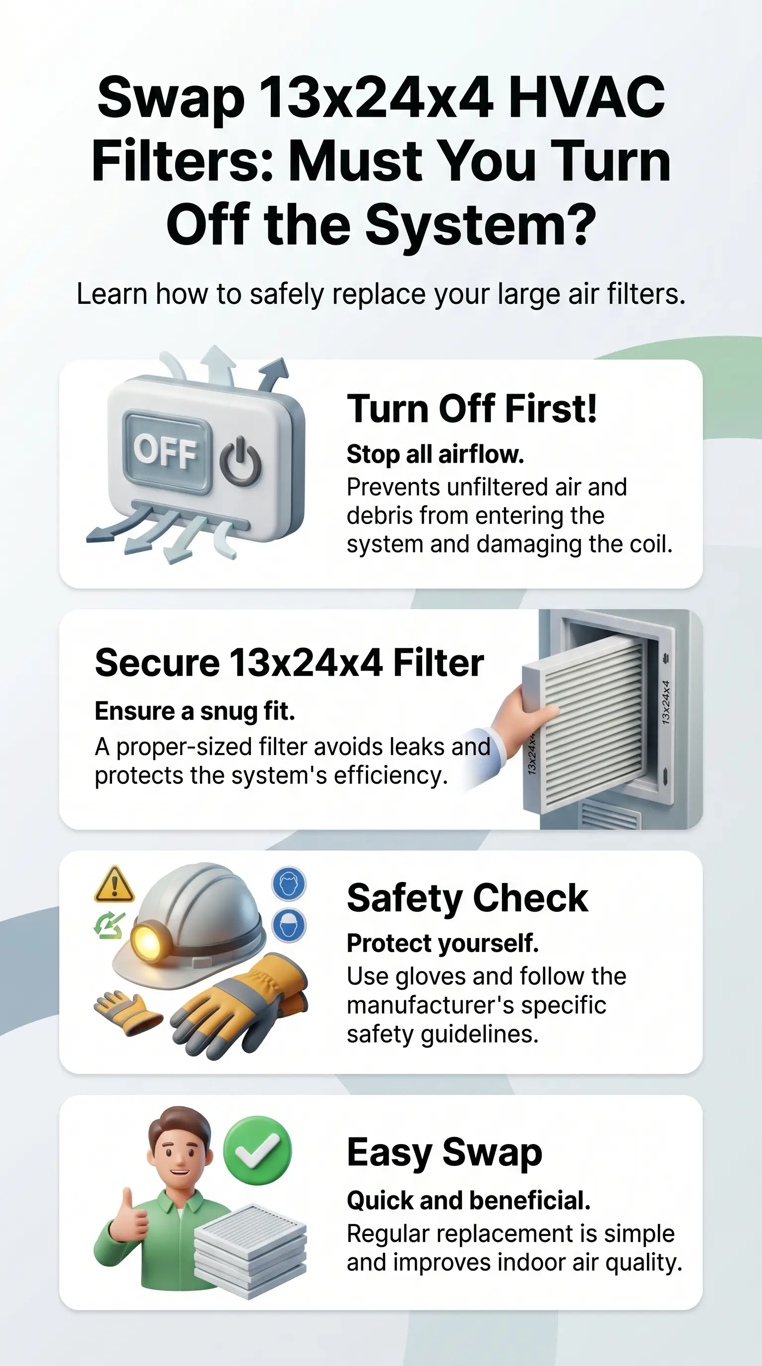Power the HVAC down at the thermostat before swapping any 13x24x4 air filter.